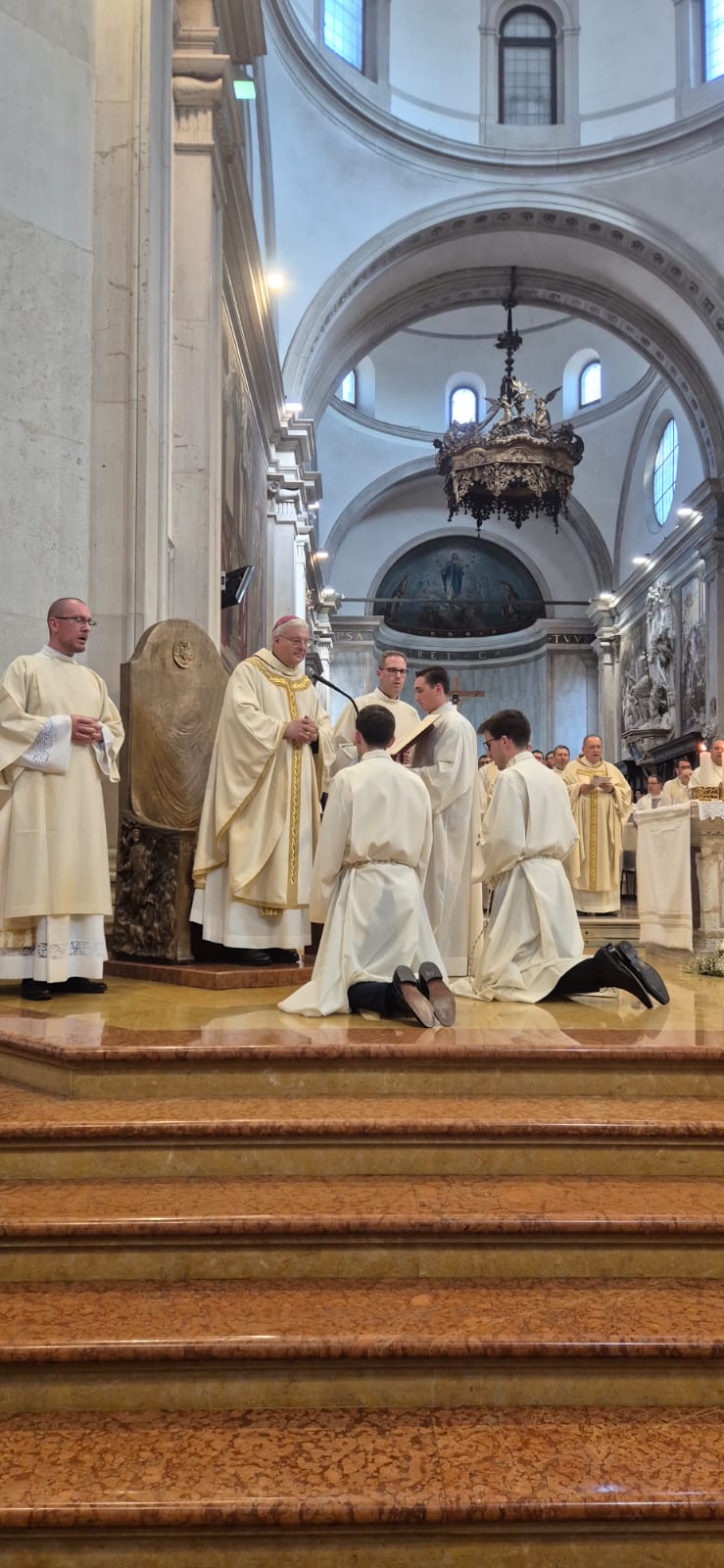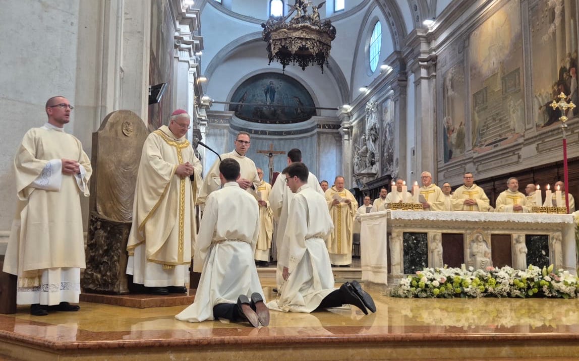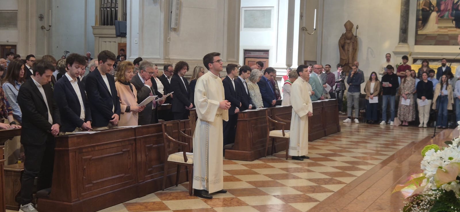 Una cattedrale gremita di fedeli, tra cui moltissimi giovani, per l’ordinazione diaconale, sabato pomeriggio, 18 aprile, di Matteo Mason e Francesco Boz Jacob. Amici, famigliari, comunità di origine e di servizio, in tanti hanno voluto partecipare alla gioia per l’Eccomi di questi due giovani.